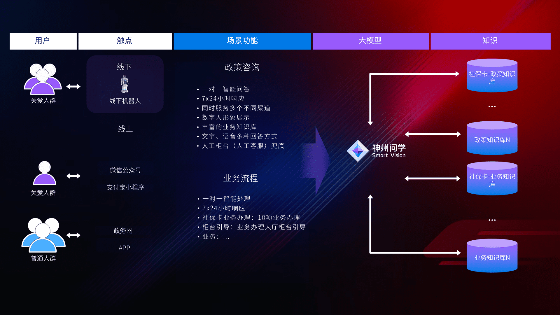 • 线上线下全覆盖:线上提供微信公众号、、、、支付宝小程序、、、政务网、、、app多种渠道,,,,与线下机器人形成完整服务体系。。